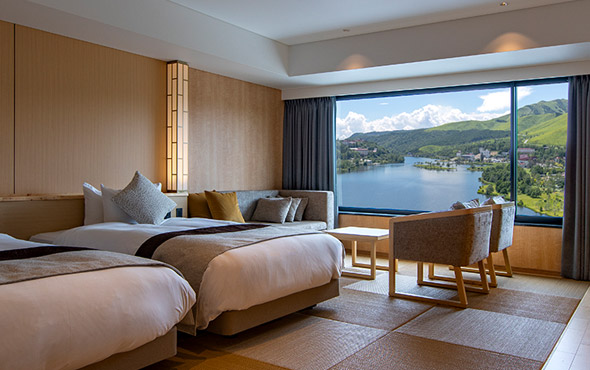 湖畔のアクティビティ、絶景温泉、季節のビュッフェをお楽しみください